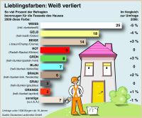 Bei der Farbpräferenz gibt es deutliche regionale Unterschiede: Im Westen der Republik dominiert eindeutig Weiß mit 38 Prozent; im Norden liegen Rot (18 Prozent) und Weiß (23 Prozent) fast gleich auf.